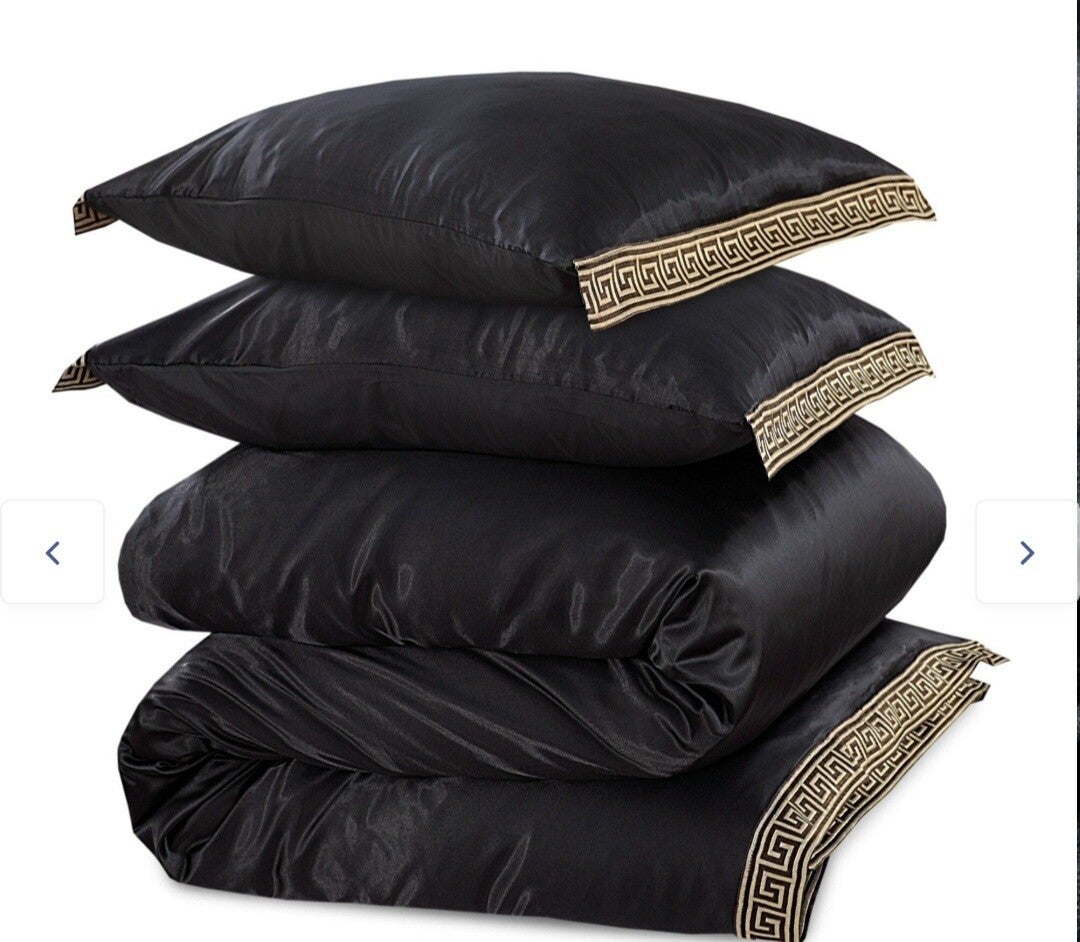 Dekbedovertrek satijn zwart griekse sleutel
